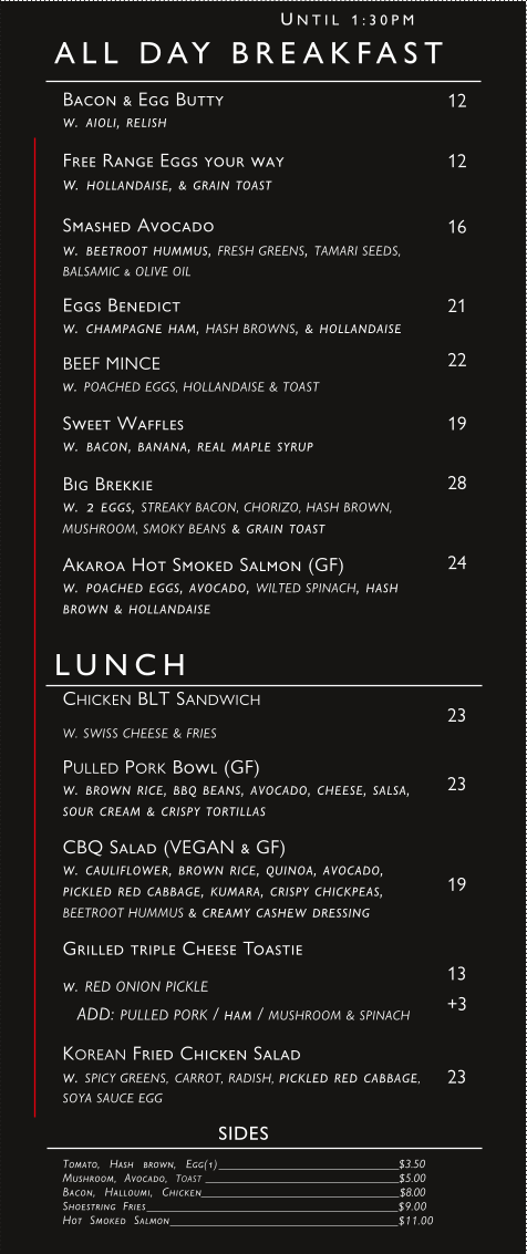 Kanteen's menu is a delightful celebration of all-day breakfast options, featuring items like the Bacon & Egg Butty and the decadent Big Brekkie. Health-conscious guests will appreciate the Smashed Avocado and the premium Akaroa Hot Smoked Salmon. Every dish boasts a thoughtful presentation, as noted by satisfied customers who rave about the quick and attentive service.